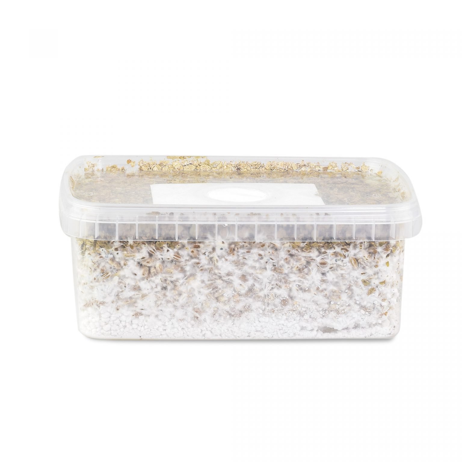 It may be that the mycelium has not grown completely in the covering layer. If this is the case, place the culture kit in a warm place around 26 degrees Celsius, until you see the mycelium growing over the surface. Then continue with step 2, when the mycelium is visible at the surface.